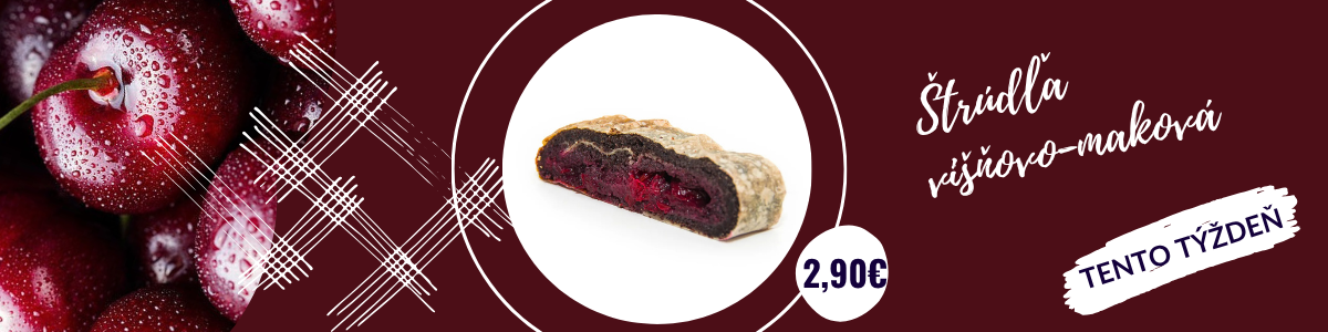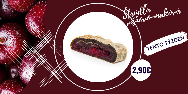 1ks, Pravá ťahaná štrúdľa s dokonale vyváženou kombináciou čerstvých šťavnatých višní a jemne mletého maku.